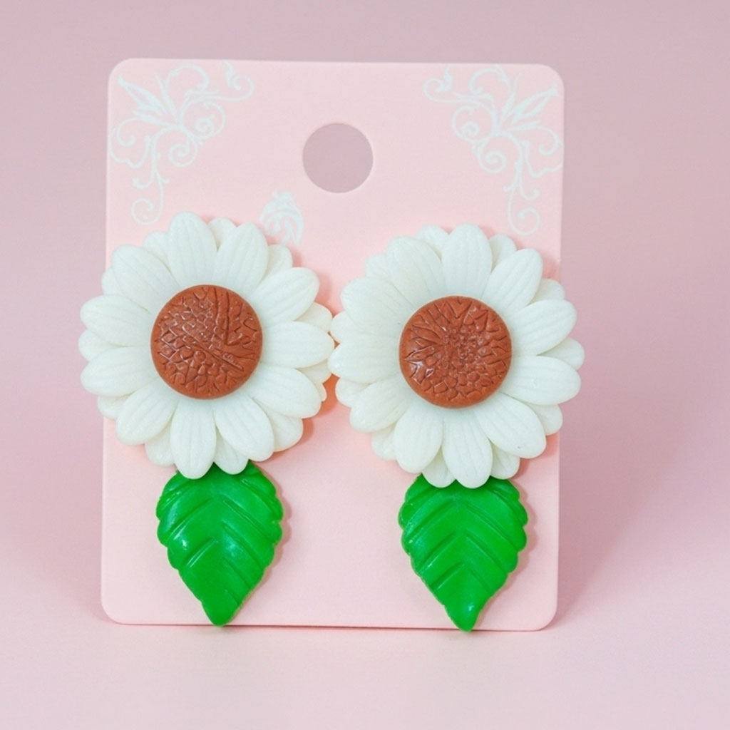 گوشواره گل سفید برگدار
